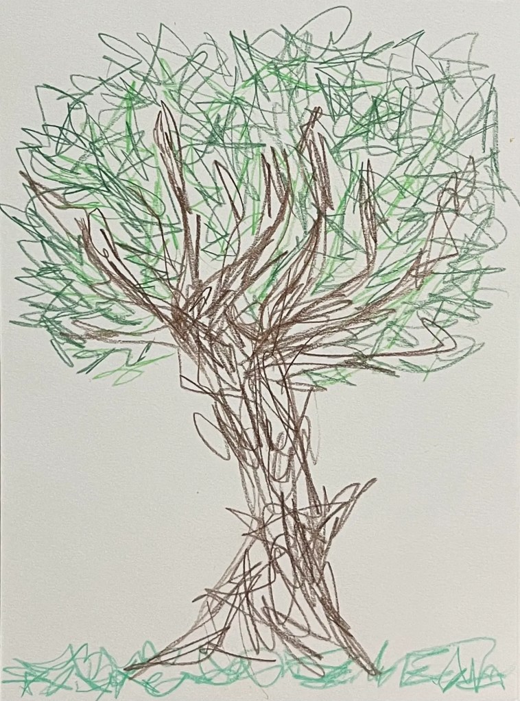 While I was trying to get out of a writing slump, I decided to draw a tree. It didn’t take long for me to get frustrated with the few lines I drew. The overwhelming urge to scribble out the drawing, tear out the piece of paper from my book, crumple it up into a tiny little ball and toss it to the side, came rushing in.